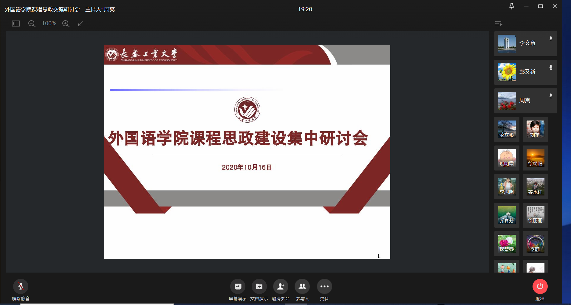 bat365在线中国官网登录入口在此次课程思政研讨会中,通过优秀案例展示活动,肯定了广大教师思政教学前期准备工作,激励和鼓舞全体教师在未来的日常教学中,继续深入挖掘德育元素,继续探讨如何有效开展课堂思政教育,做到语言与育人的深度融合!
