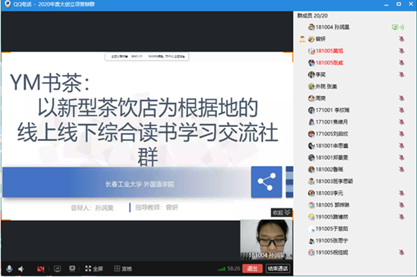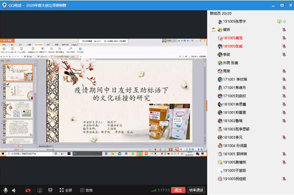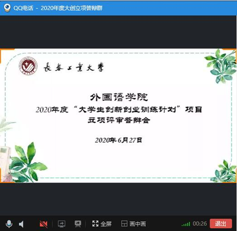 新闻网讯(通讯员 张美) 6月27日星期六19:00开始,bat365在线中国官网登录入口通过QQ屏幕共享在线进行了2020年度“大学生创新创业训练计划”项目的立项答辩工作。教学院长周爽出席答辩会,日语系主任曾妍、英语系书记李笑、俄语系主任张美担任此次立项答辩的专家评委。