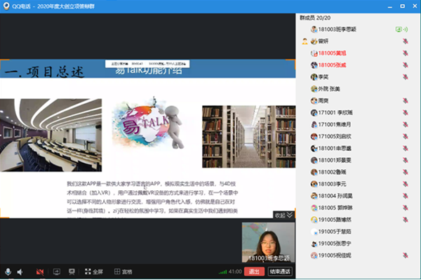 本次评审共有16个项目参加立项答辩。按照《关于开展2020年大学生创新创业训练计划项目立项评审工作通知》的要求,各项目组在指导教师指导下认真准备好项目申请书、制作好答辩用PPT,按时入群参加在线立项答辩。16个项目中包含5项创业项目,11项创新项目。