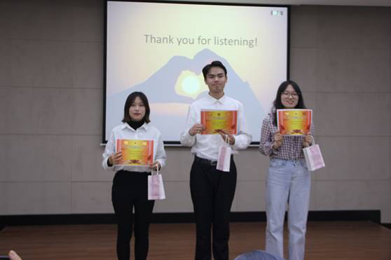 院长彭又新、英语系党支部书记李笑老师应邀出席了此次演讲比赛。比赛中,11位参赛选手生动的演讲不仅展示了深厚的英语演讲功底,同时也彰显了本科学生积极向上的良好精神风貌。经过激烈的角逐,罗国欢、陈建颖、张梓琪3位选手脱颖而出,获得本次比赛的前三名。