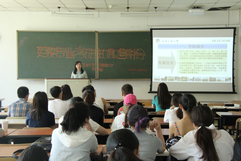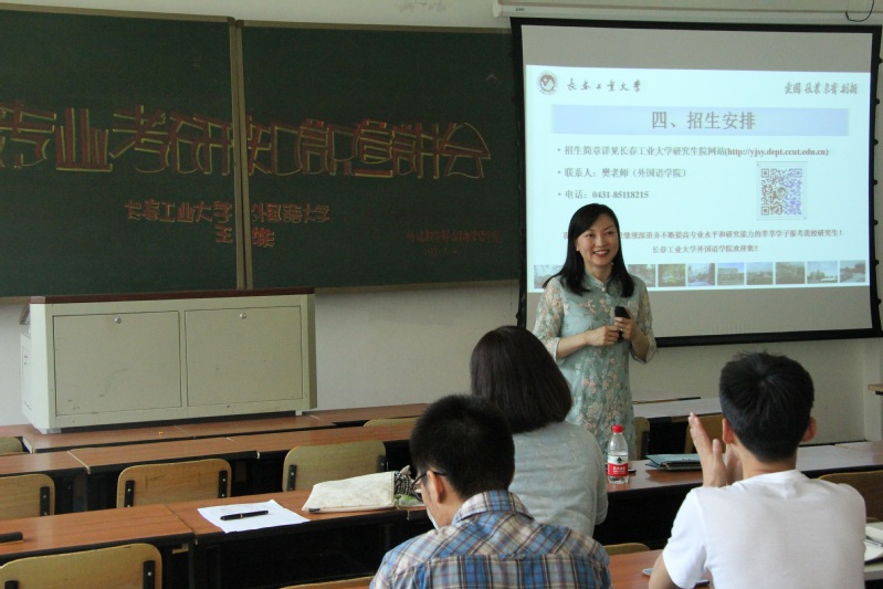 7月2日下午,bat365在线中国官网登录入口王轶副院长前往长春中医药大学进行研究生招生宣讲。此次宣讲活动得到长春中医药大学英语专业学生的积极响应,2016级和2017级英语专业的全体同学早早来到教室,等待宣讲活动开始。