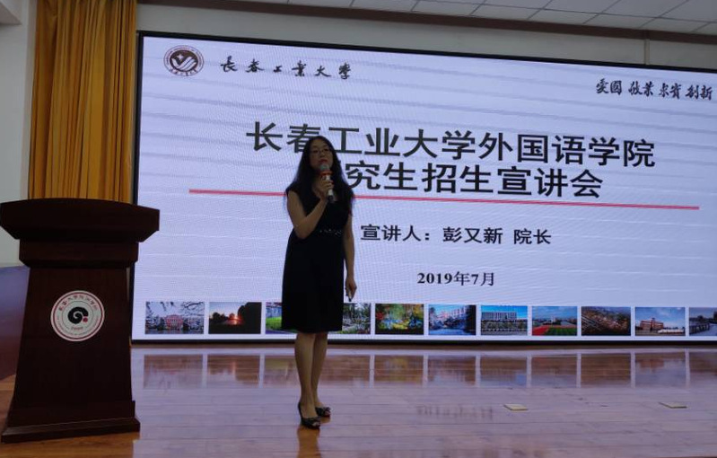 【通讯员张美】7月9日下午,bat365在线中国官网登录入口院长彭又新、副院长王轶偕同日语系系主任曾妍、以及俄语系教师张美一起到长春大学旅游学院进行研究生招生宣讲活动。宣讲会得到了长旅领导的高度重视,国际交流学院的黄院长和王副院长早早做好了宣讲前的宣传准备工作,英日俄三个专业的大三学生提前来到阶梯教室静候宣讲开始。