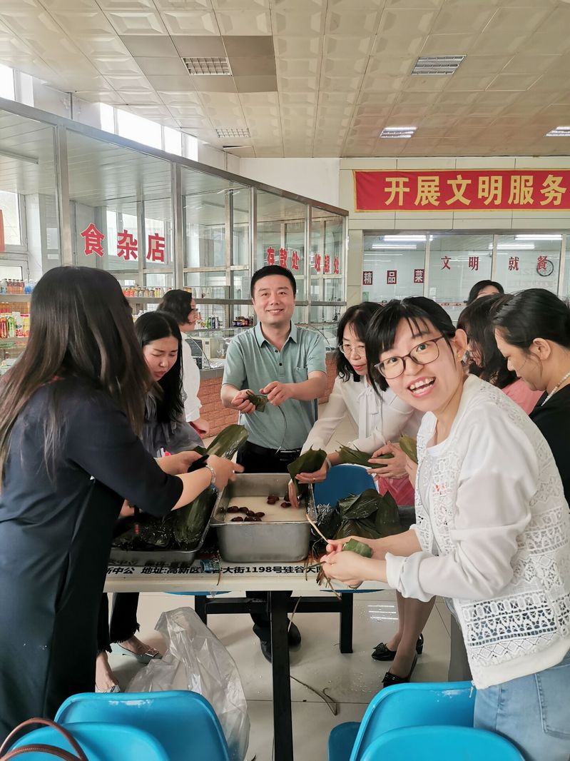 6月5日下午,bat365在线中国官网登录入口组织全体教职工开展了端午“粽香传真情”活动。林园校区食堂为此次活动精心准备了优质的糯米、大大的红枣、棕绳方便袋等等,师傅们手把手交,老师们认认真真学,现场充满了祥和的节日气氛。