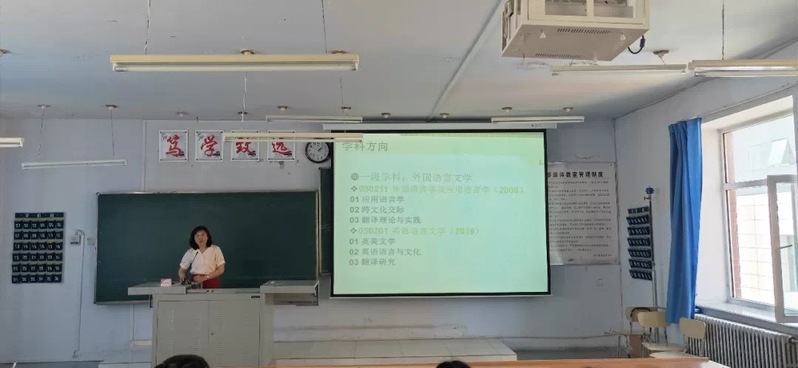 刘宇主要从学科方向,学科特色,教师队伍,学术及实践活动,毕业去向,优秀毕业生及其成就,考试科目相关参考书等几个方面进行了详细介绍,充分的介绍了外国语语言学及应用语言学方向。同时,介绍英语语言文学以英美研究文学为中心,文论研究、文化研究、文学翻译研究、比较文学研究几个方面共同发展的学科特色。