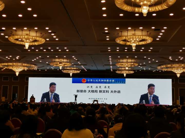 全国高等学校外语教育改革与发展高端论坛已经举办至第四届。本届论坛由北京外国语大学、教育部高等学校外国语言文学类专业教学指导委员会与教育部高等学校大学外语教学指导委员会联合主办,特邀上海外国语大学与大连外国语大学协办,委托北京外国语大学中国外语与教育研究中心、北京外国语大学中国外语测评中心和外语教学与研究出版社共同承办。论坛上更是邀请了教育部高等教育司吴岩司长做了“识变 应变 求变---新使命 大格局 新文科 大外语”的报告。吴岩司长指出,高等外语教育发展要超前识变、积极应变、主动求变,着力培养“一精多会”、“一专多能”的高素质国际化复合型人才。