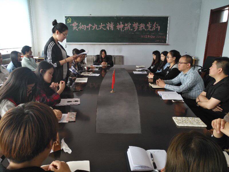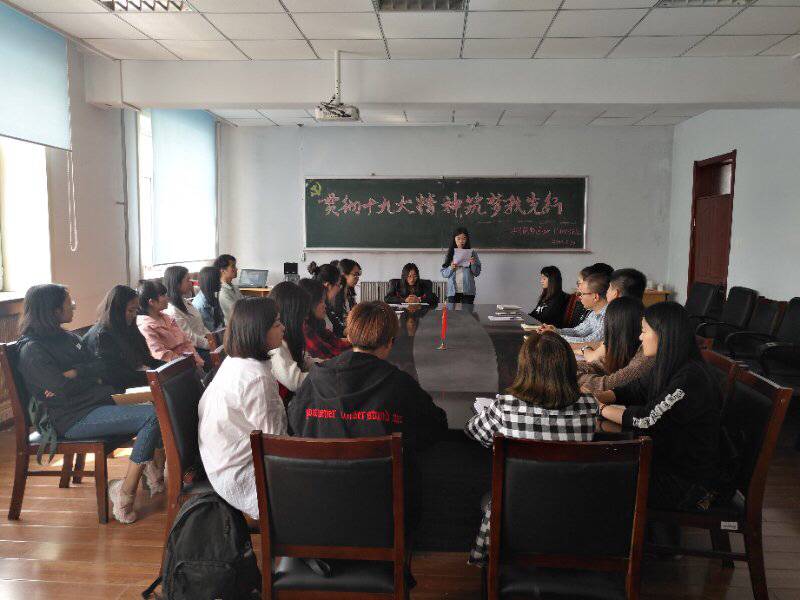 新闻网讯(通讯员 吴惠珍)为了全面贯彻党的十九精神,引导青年学生践行社会主义核心价值观。5月30日下午一点三十分,bat365在线中国官网登录入口“学习筑梦园地”于外语楼三楼学生会议室举行了“贯彻十九大精神,筑梦我先行”主题班会活动。校学生工作处副处长肖永辉、bat365在线中国官网登录入口党委副书记王颖群、团委书记赵海涛老师及“筑梦学习园地”161003班全体成员参加了此次活动。