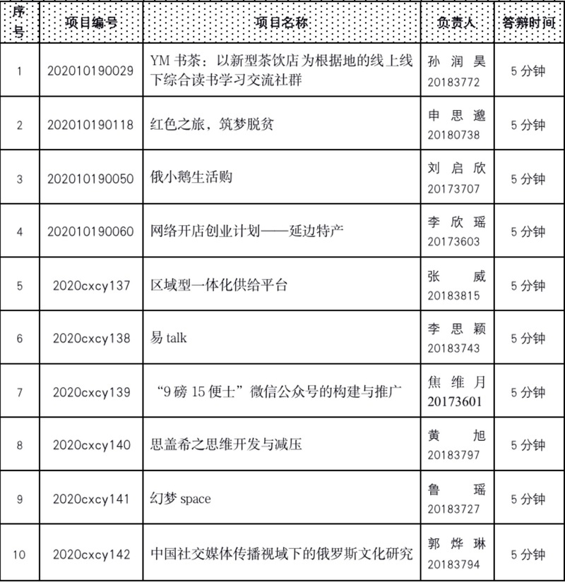 (答辩项目名单)