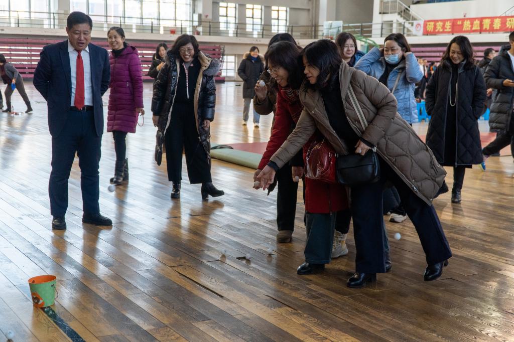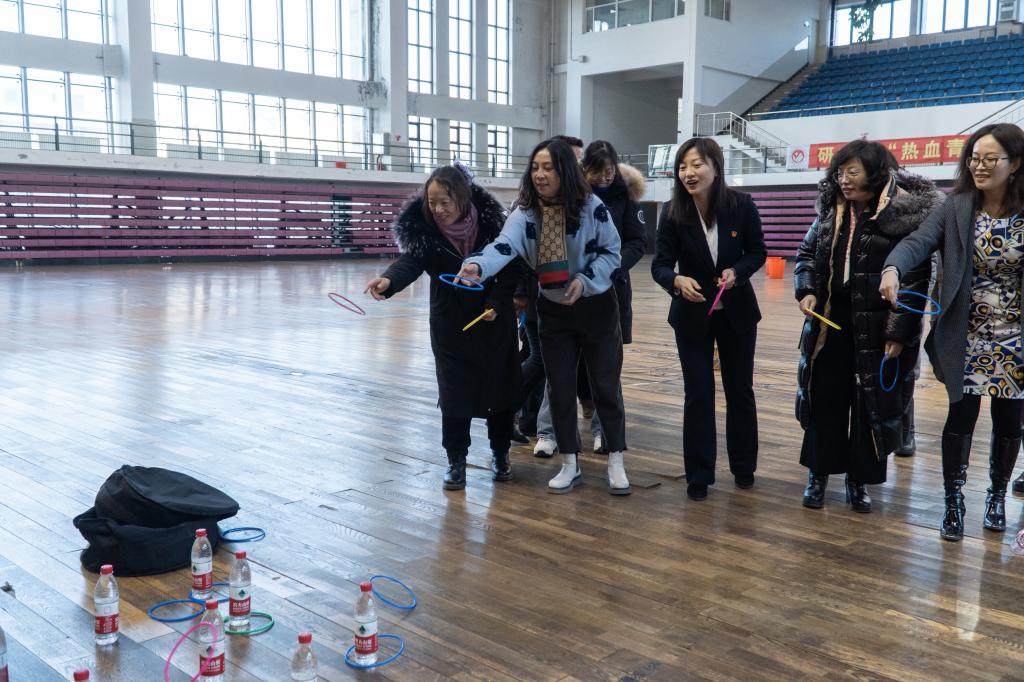 本次联欢活动设置了击鼓颠球、背靠背夹球跑、乒乓球拍托球跑、套圈、射箭、飞镖、乒乓球击球等活动。活动现场气氛十分活跃,洋溢着节日的喜庆,教职工们积极参与活动中,营造出了愉快、轻松的氛围。全体教师在快乐开心的氛围中送走了2021年,共同迈向充满希望与憧憬的2022年。