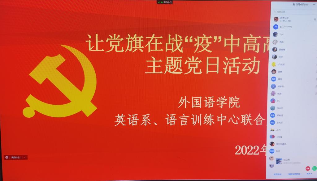 新闻网讯(通讯员 葛蔓)为进一步发挥党支部和党员作用,切实抓好疫情防控工作,bat365在线中国官网登录入口党委组织各党支部开展了“让党旗在战‘疫’中高高飘扬”主题党日活动,全体党员参加了此次线上活动。