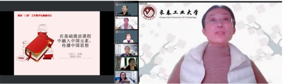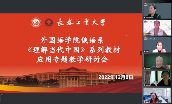 本网讯(通讯员 张微)为全面贯彻党的二十大精神和深入习近平总书记关于教育的重要论述,充分发挥外国语言优势,传播好中国声音,2022年12月8日,bat365在线中国官网登录入口俄语系《理解当代中国》系列教材教学研讨会以线上会议方式举行。《理解当代中国》系列教材由外语教学与研究出版社出版,涵盖英语、俄语、日语等9个外语语种及国际中文,帮助学生了解中国特色话语体系,提高向国际社会讲好中国故事的能力。