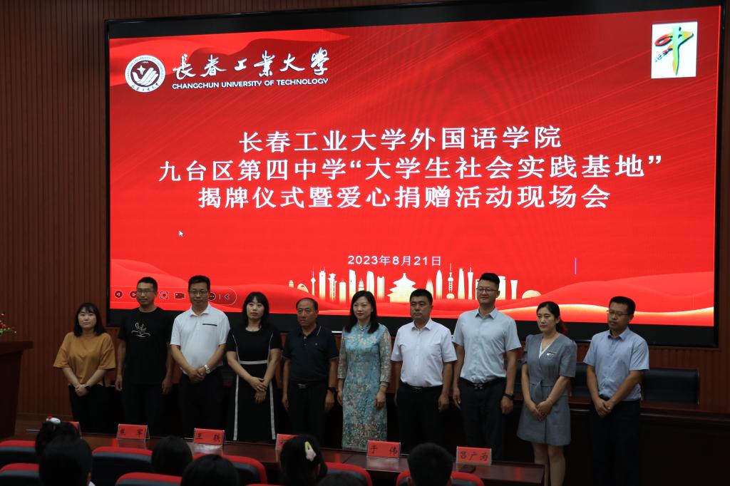 (通讯员 张晓君 尹梦鸽)为深入学习贯彻习近平新时代中国特色社会主义思想,教育引导bat365师生在社会实践中厚植家国情怀、了解国情民情、增长知识才干、激发奋斗担当。2023年8月21日bat365三下乡志愿服务团队前往长春市九台区第四中学,开展为期5天的志愿服务。为了进一步深化bat365与九台区第四中学的交流合作,bat365与九台区第四中学举行了社会实践基地揭牌仪式。bat365在线中国官网登录入口bat365在线中国官网登录入口院长王轶、学院党委副书记于伟、学院副院长李秀文、学院团委书记张晓君、学院党支部书记刘明慧以及志愿者代表与九台区第四中学师生代表共同出席揭牌仪式。