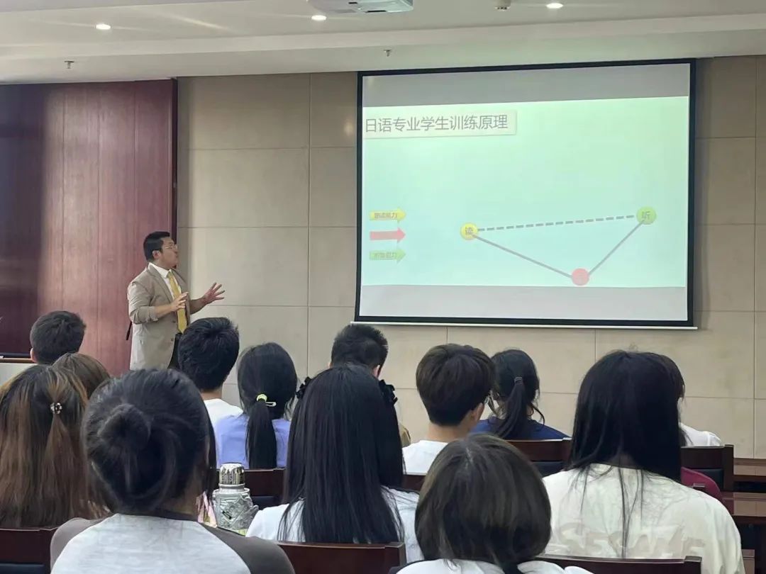 日语专业由日语系主任宋卓时进行介绍,他从专业情况、就业前景、未来趋势三个方面做出了详细报告。宋老师提出,日语专业旨在培养综合素质良好,国际视野开阔,创新能力较强的高素质、应用型日语专业人才。特别强调学生在毕业时应具有扎实的日语基本功和专业能力,熟练的日语听说读写译技能与良好的交流与沟通技巧,拥有较强的思辨能力与创新能力,能综合运用所学知识与技能在外贸、教育、文化等领域从事教学、翻译、商务、管理等相关工作。希望同学们能在bat365在线中国官网登录入口日语教师的领导下,充实而愉快的完成大学生活和学习。