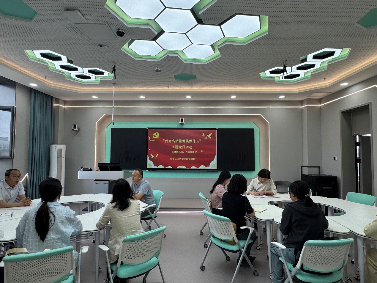 本网讯(通讯员 王琴)锚定高质量发展目标,以坚定的信念、切实的行动,让“英”姿闪耀在发展征程的每一处。5月21日,学院英语系和语言训练中心党支部在374智慧教室开展“我为高质量发展做什么”——“‘英’姿展风采,共筑发展梦”主题党日活动。本次活动由英语系和语言训练中心党支部书记李笑主持。