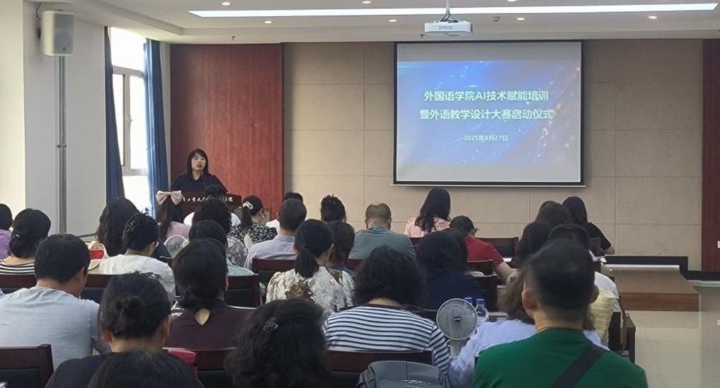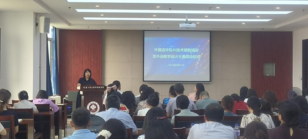 本网讯(通讯员 赵文佳)2025年6月27日下午,bat365在线中国官网登录入口举行了AI技术赋能培训暨外语教学设计大赛启动仪式。本次活动旨在推动人工智能技术与外语教育的深度融合,标志着学院在智能化教学改革征程中迈出关键一步。学院党政领导班子成员和学院全体教师参加会议。启动仪式由副院长李秀文主持。