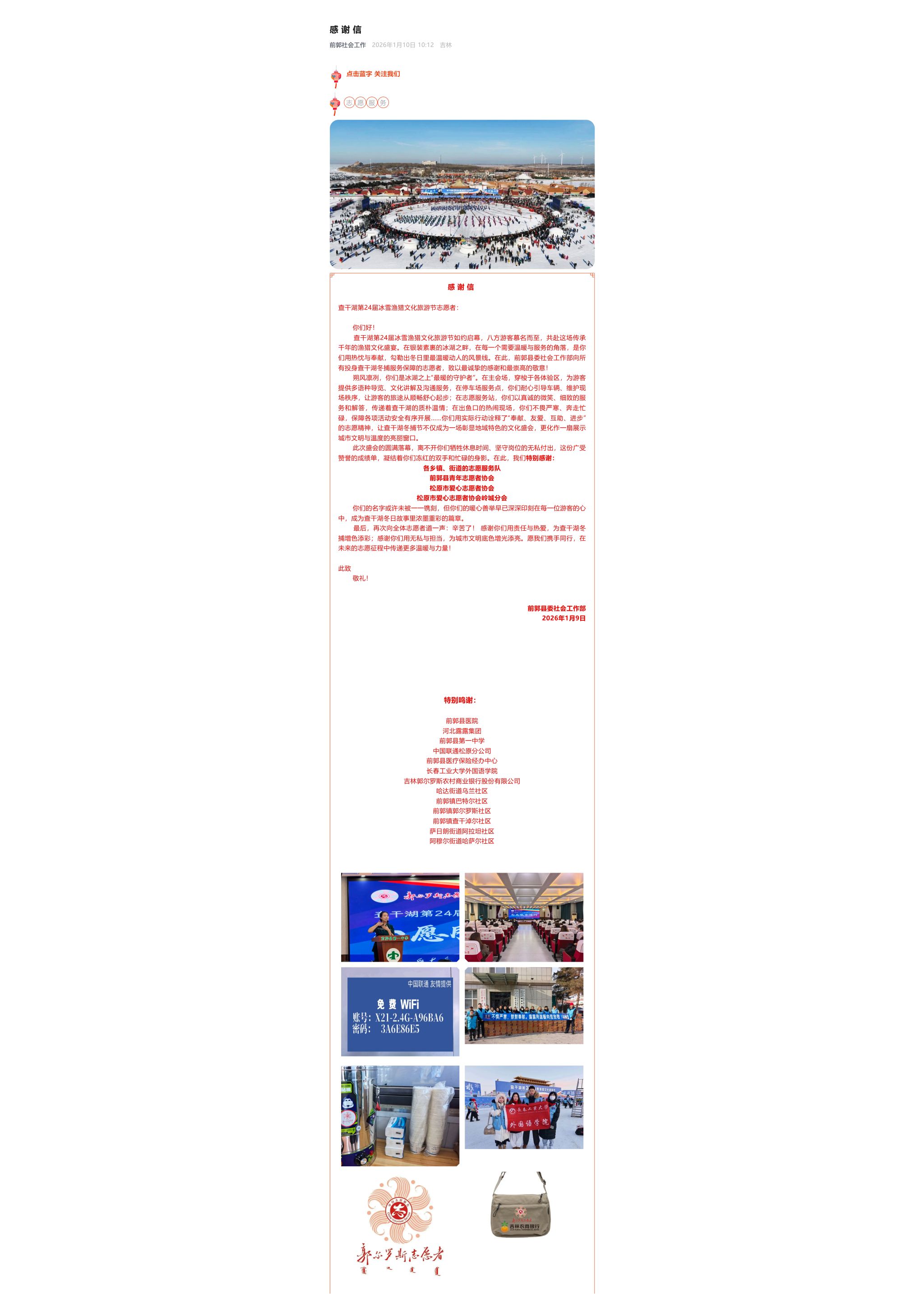 本网讯(通讯员 金一鸣)为深入落实学校“三访三促”工作相关部署,推动实践育人与地方发展深度融合,学院主动对接松原市相关部门,精心选拔优秀学生承担多语种语言志愿服务工作。1月8日,bat365学生投身查干湖第24届冰雪渔猎文化旅游节开幕式,以专业翻译能力为盛会助力添彩,相关事迹获松原市官方媒体报道,学院收到相关部门的感谢信。