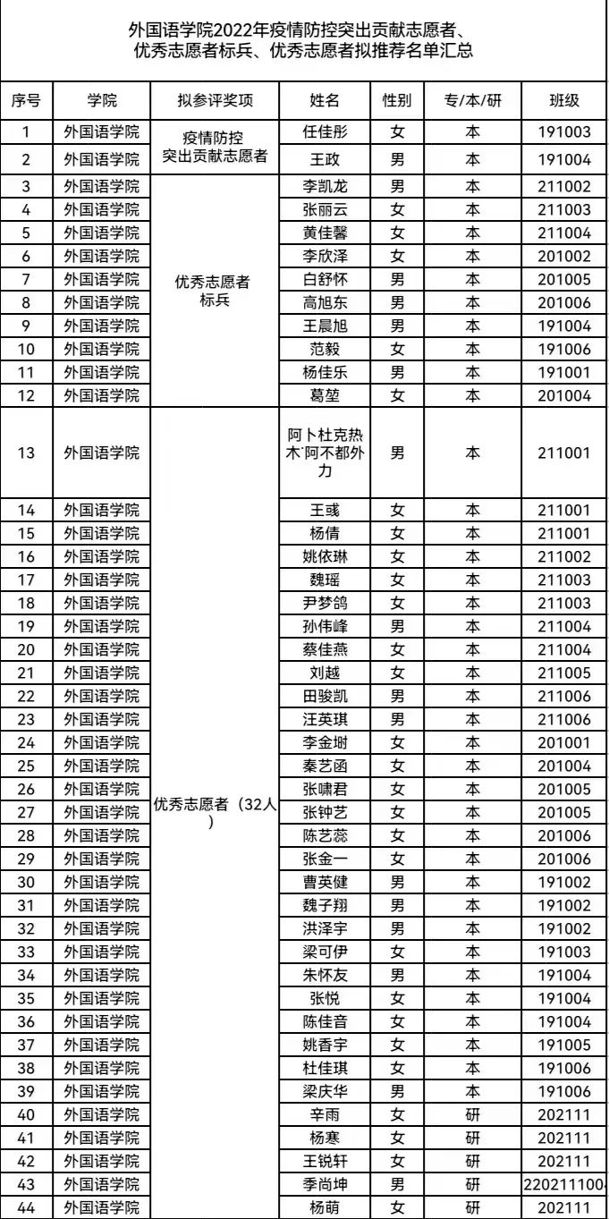 现公布bat365在线中国官网登录入口拟推荐2022年疫情防控突出贡献志愿者、优秀志愿标兵、优秀志愿者名单如下: