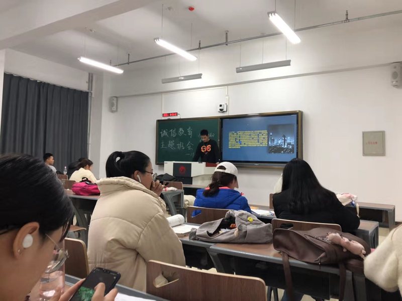 191001班刘筱雪同学认真讲述失信案例,同学们认真聆听,积极学习,从案例中汲取经验教训。