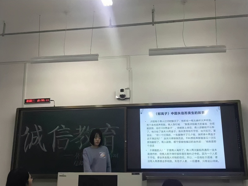 191006班高佳琪同学带领同学从学生守则,法律等角度理解诚信内涵,呼吁同学传承文明,践行美德,诚信为本。