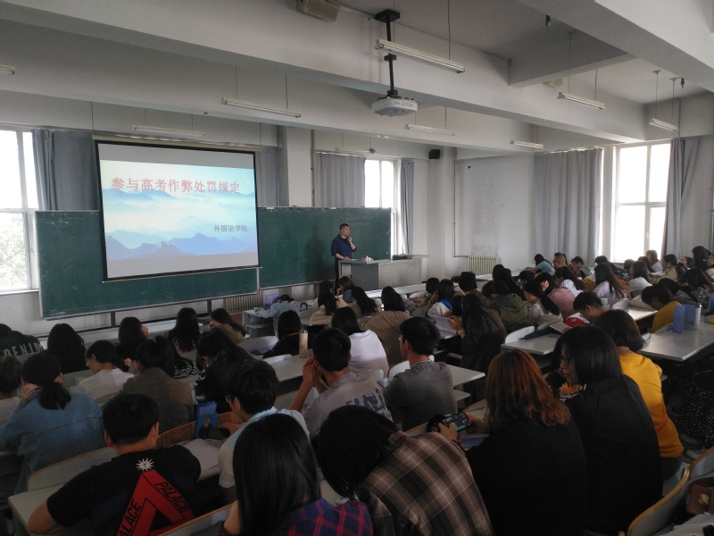 (通讯员:李雨晴)5月31日下午三点半,为迎接即将到来的2019年高考,响应国家号召维护考试公平,bat365在线中国官网登录入口全体学生在团委书记赵海涛老师的指导下,于教图楼401室召开了“关于高考作弊处罚规定”大会。