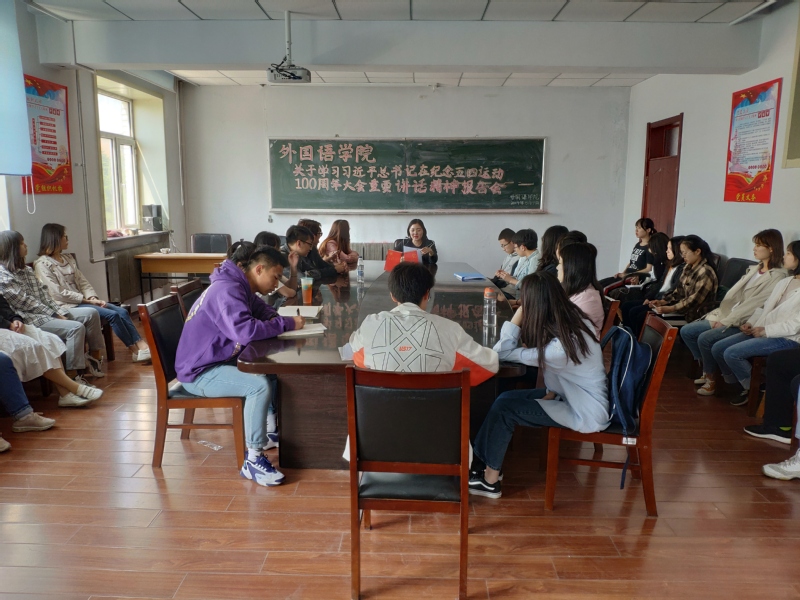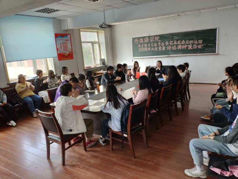 本次活动在主持人的带领下回顾了习近平主席在在纪念五四运动100周年大会重要讲话的内容,同时深刻剖析了其讲话的精神实质及丰富内涵。接着号召同学们深刻领会五四运动的历史意义和五四精神的时代价值。同学们发言表示自己认识到作为青年一代的实力责任感和使命,表示要坚持中国共产党的领导,同人民一道,为实现中华民族伟大复兴的中国梦而奋斗。