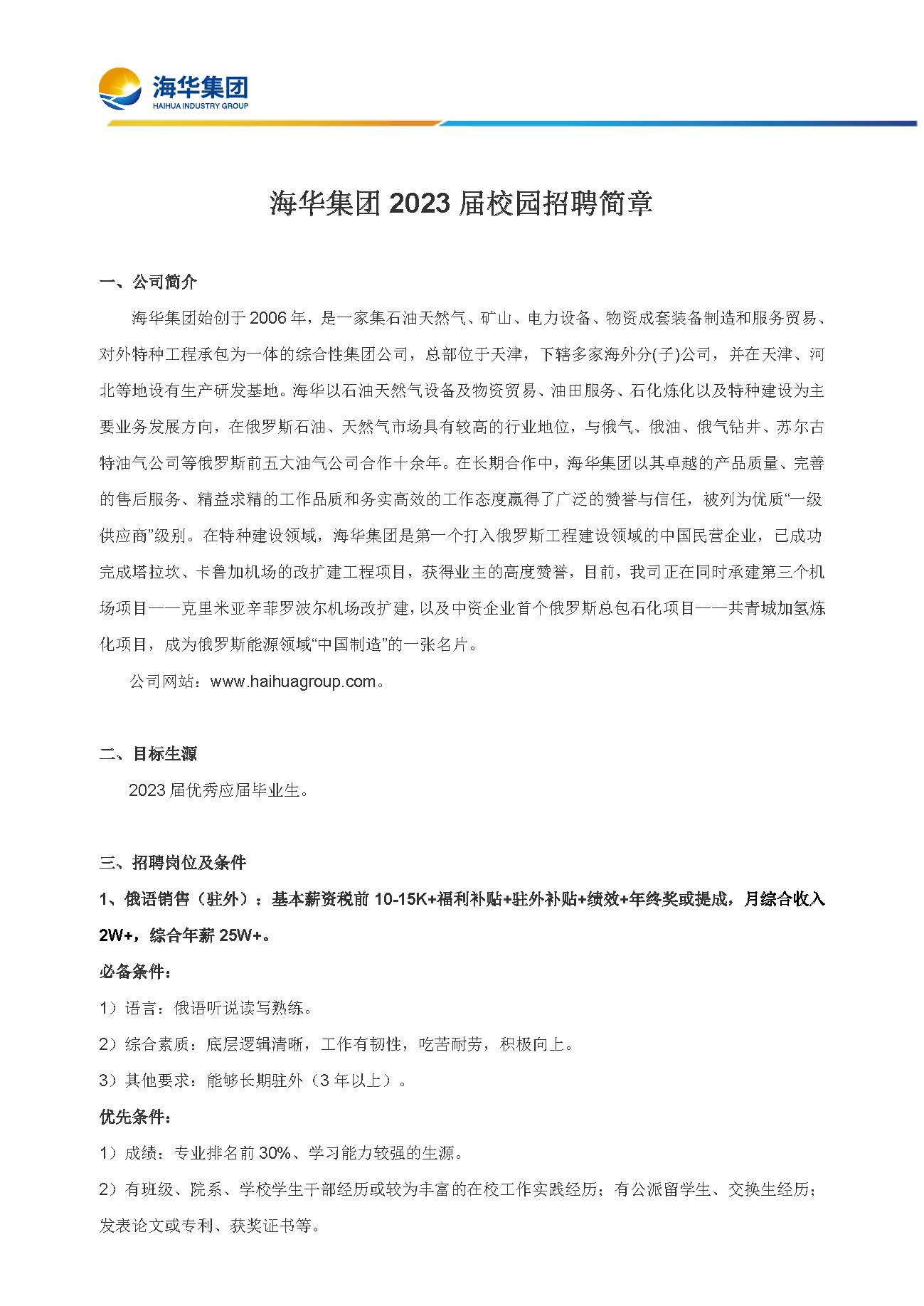 海华集团2023届校园招聘简章