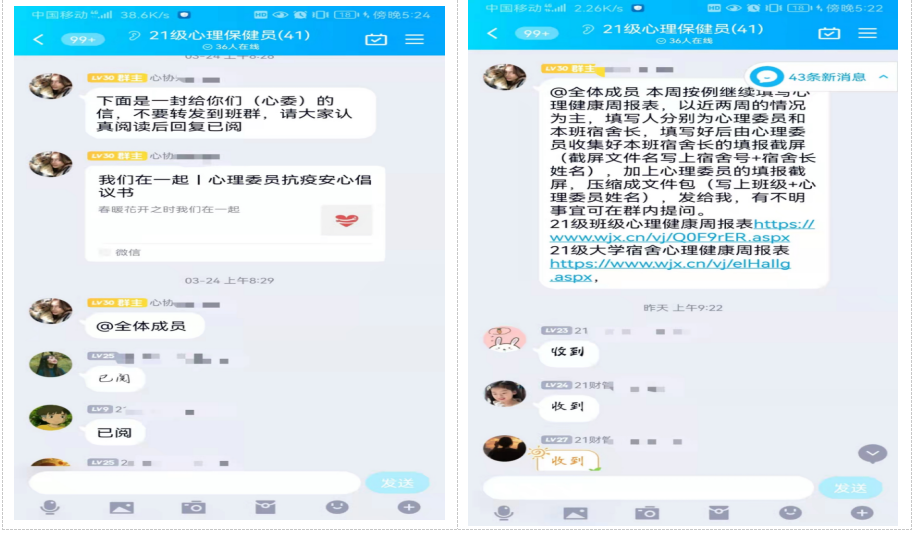 beat365以确保学生心理安全稳定为目标,将学生心理健康教育纳入到疫情防控整体工作中,准确把握学生心理动向,及早开展心理危机预防与干预。一是不断完善危机预防干预体系。学校构建了“学校—学院—班级—寝室”四级心理健康教育工作网络。在每个班级配备学生心理委员,每个寝室配备学生心理信息员,开展疫情防控心理健康知识宣传,并发布了《心理委员抗疫安心倡议书》,号召全体心理委员行动起来,积极主动了解疫情期间学生的心理健康状况,及时发现学生存在的心理问题,并在beat365所开通的线上“心理健康周报表”中填报或向辅导员及时报告,总体上形成相对闭合、齐抓共管、四级联动的教育工作体系和局面,使存在心理困扰的学生能够得到及时有效的帮助,增强了学校心理健康教育工作的辐射广度与强度。