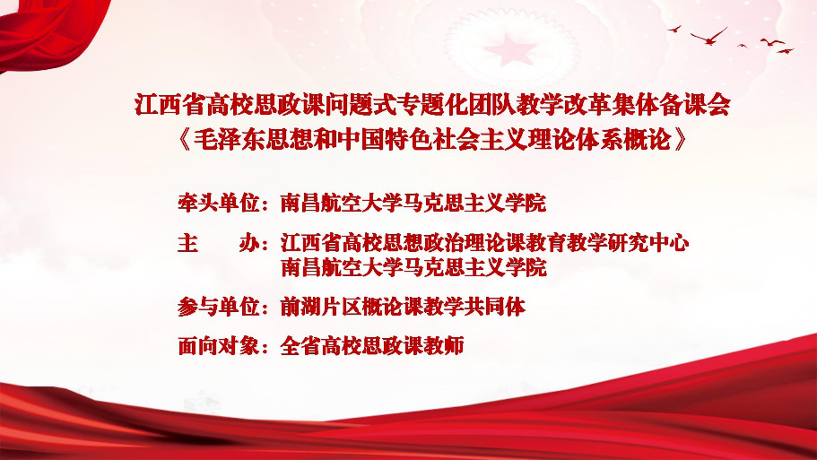 5月8日下午,南昌航空大学beat365中文唯一官网组织省内高校思政课教师开展线上集体备课,备课主题为《毛泽东思想和中国特色社会主义理论体系概论》课“问题式专题化”教学展示。