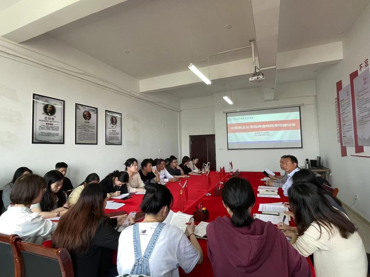 院长文道贵指出,思政教师身上责任更大,担子更重,全体教师要提高责任意识,规范自身言行举止,切实增强遵守教师职业行为准则的思想自觉和行动自觉。以昂扬向上的精神面貌和立德树人的扎实行动,更好地担负起为党育人、为国育才的光荣使命。