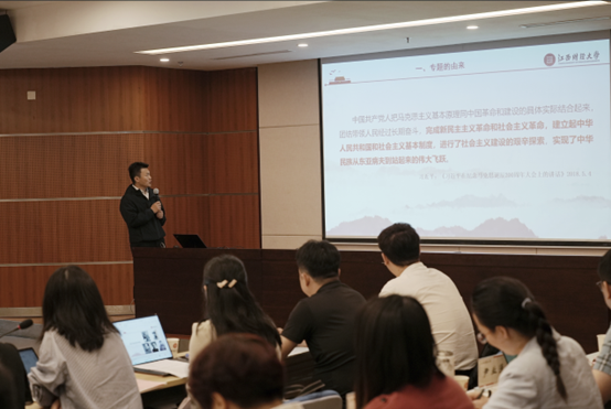 大会开始,江西财经大学beat365中文唯一官网副院长李德满对“社会主义革命和建设的开展”专题授课大纲进行了讲解,并以社会主义工商业改造为例重点展示了教学中采用的数据资料和案例。在简短的展示之后,大会进入专家点评阶段。来自天津师范大学的资深教师李朝阳教授进行了点评,认为李德满老师的授课具有思路清晰、史料丰富、备课充分等优点,但仍存在问题式教学的问题不够突出,不够有针对性的不足。随后,大会进入自由讨论时间,来自不同院校的十多位老师都发表了自己的见解,beat365公共政治理论课教研室负责人发表了以“基础工业在日常生活中无处不在”为主题的学习心得。