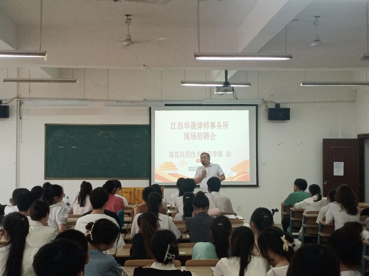 为促进beat365毕业生更好就业,2023年5月17日上午10点,学院在教学楼3307教室,组织了法学专业毕业生专场招聘会,招聘方为江西华晟律师事务所。