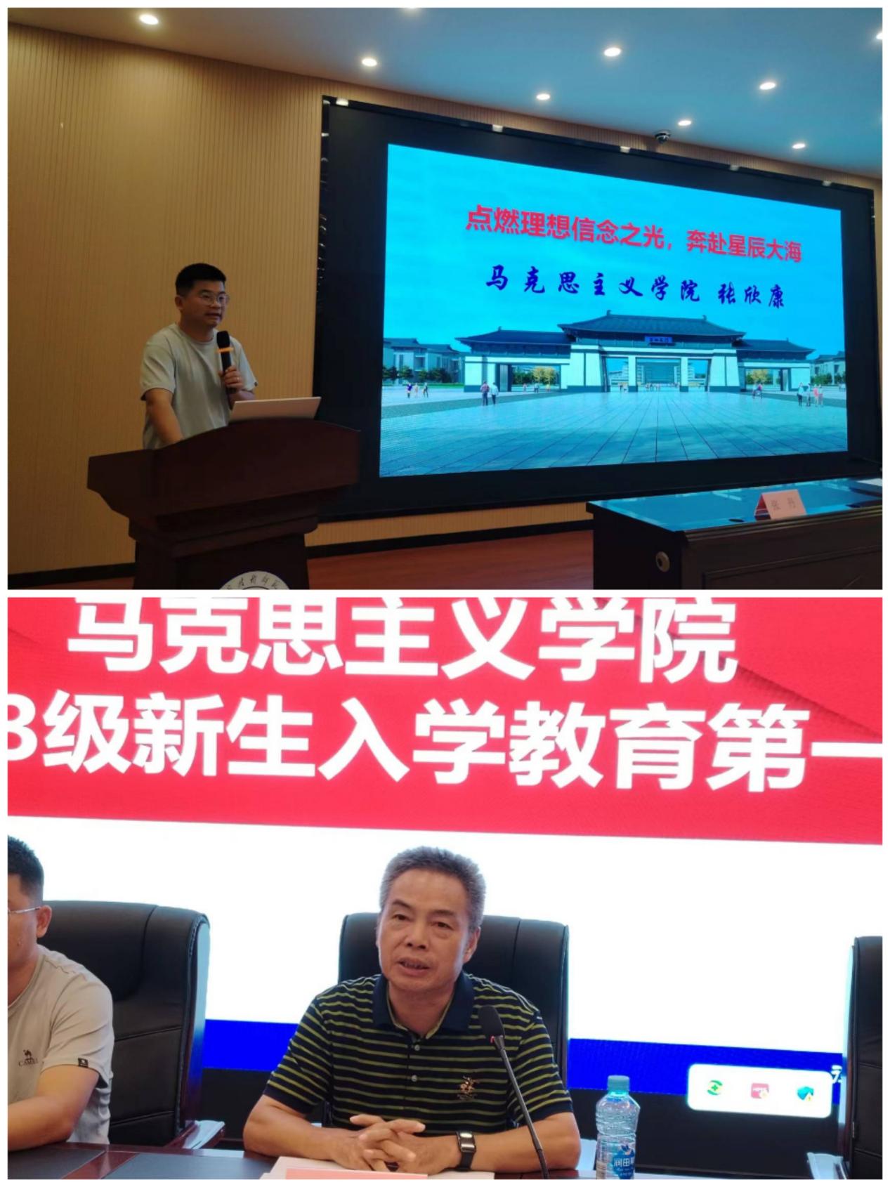 最后,院长文道贵做总结发言。他强调三点:一是熟悉我的大学、我的学院。作为应师院的一份子,马院的一份子,铭记校训,在熟悉校园环境的同时更要熟悉学院环境,去认识学院老师,去感受学院浓厚的书香气的学习氛围;二是熟悉我的专业。从宏观来说,法学专业也好,思政专业也好,其实就是“做人”的工作,要锻炼做人的工作本领,了解本专业后要科学的安排自己的大学生活,理论联系实际,要重视学分、社会实践、毕业论文等三大块的学习任务;三是合理规划我的大学生活。要求学生要懂得时间管理,学习的成长需要经过时间的历练,要不断完善自身、发展自身,每个专业都有其自身的优点,要坚信“三百六十行,行行出状元的”,只有把自己做得最好,才能出类拔萃,成就出彩人生。