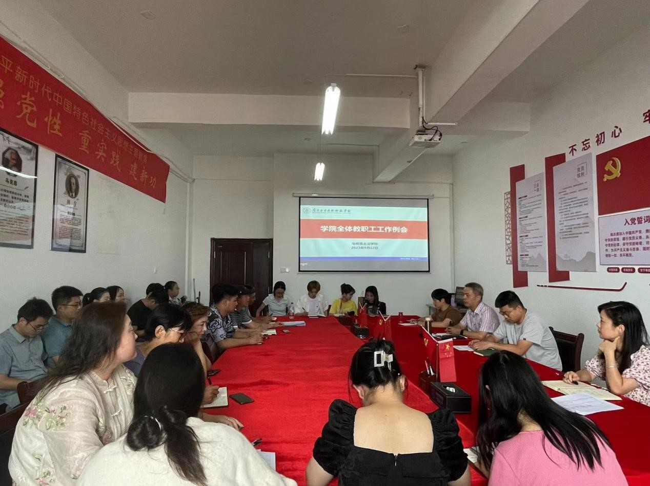 9月12日下午,beat365中文唯一官网在1511会议室召开了全体教职工例会。院长文道贵、党总支书记张欣康、党总支副书记李婷、副院长张丹、各教研室主任、各科室负责人以及全体教职工参加,会议由院长文道贵主持。