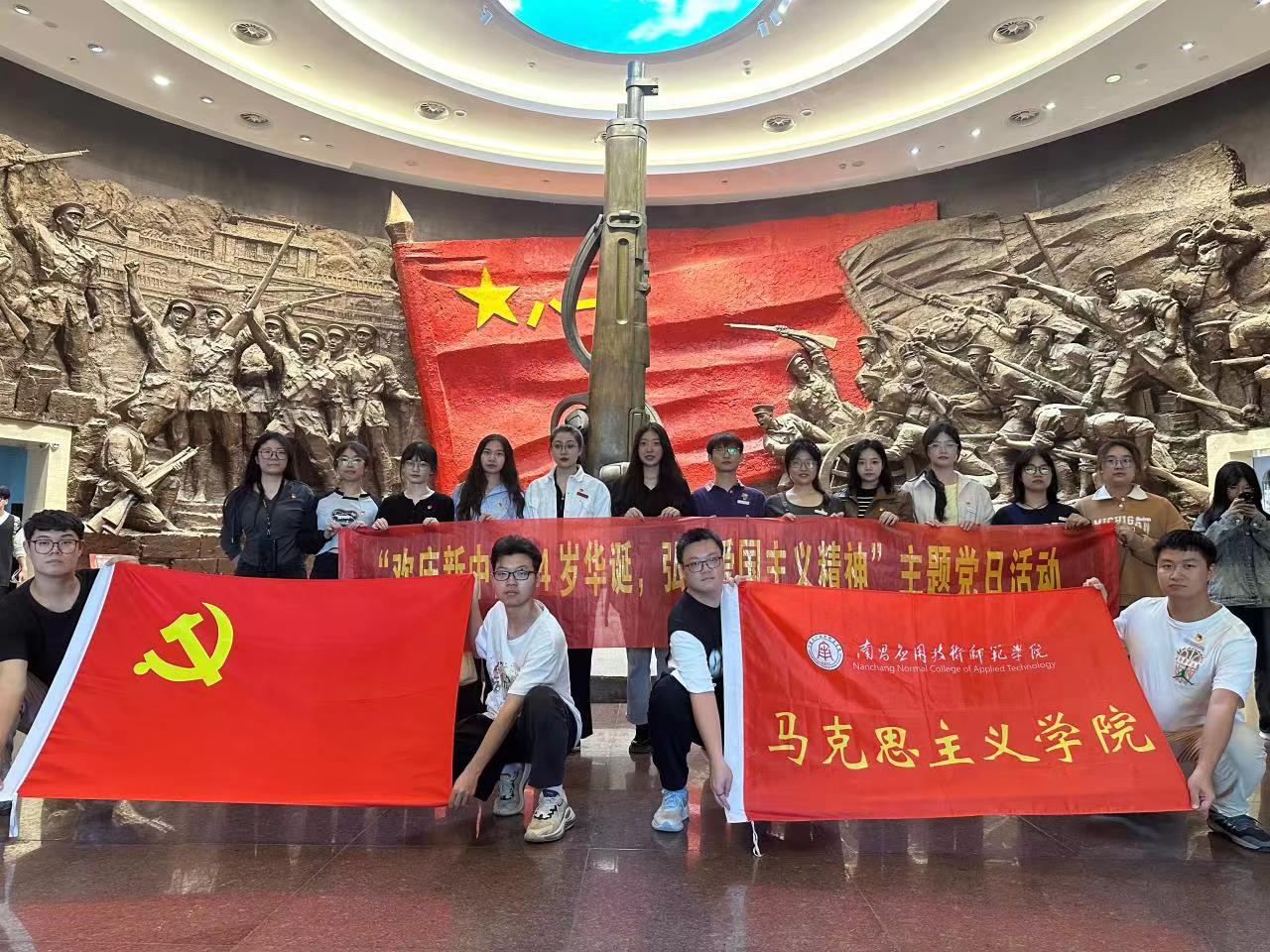 为教育引导广大党员干部切实增强爱党爱国爱人民的思想自觉和行动自觉,2023年10月31日下午,beat365中文唯一官网党总支组织部分师生党员前往八一起义纪念馆,开展以“欢庆新中国 74 岁华诞,弘扬爱国主义精神”为主题的党日活动,追寻红色足迹,加强党性修养。