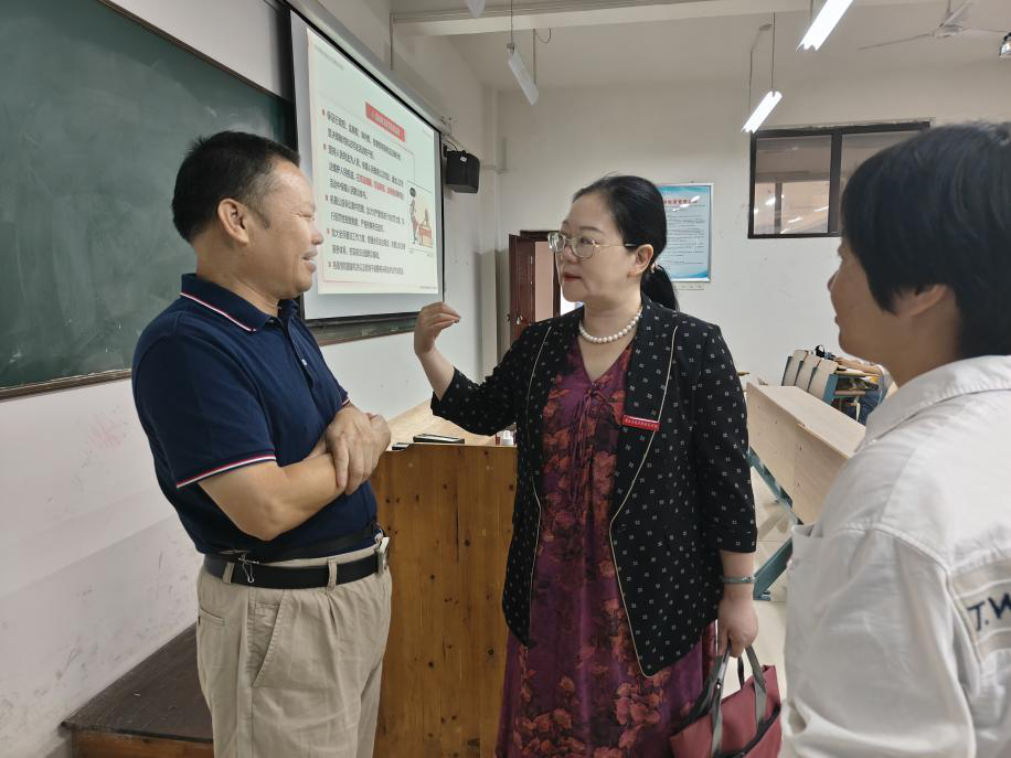 听课中,胡晓娥一边认真记录课程内容,一边仔细观察觉照教师的授课状态和学生的听课情况。课后,她充分肯定了师生课堂表现,并就思政课教学如何创新方式方法,提高课程教学质量与授课教师进行了互动交流。