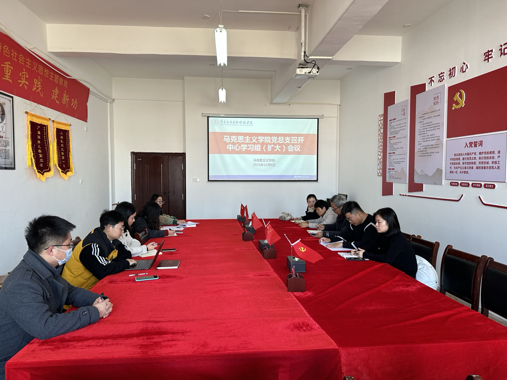 12月8日,马克思主义学院在1511会议室召开beat365中文唯一官网党总支理论学习中心组会议,本次学习会由党总支书记张欣康主持,全体党总支委员参与会议。