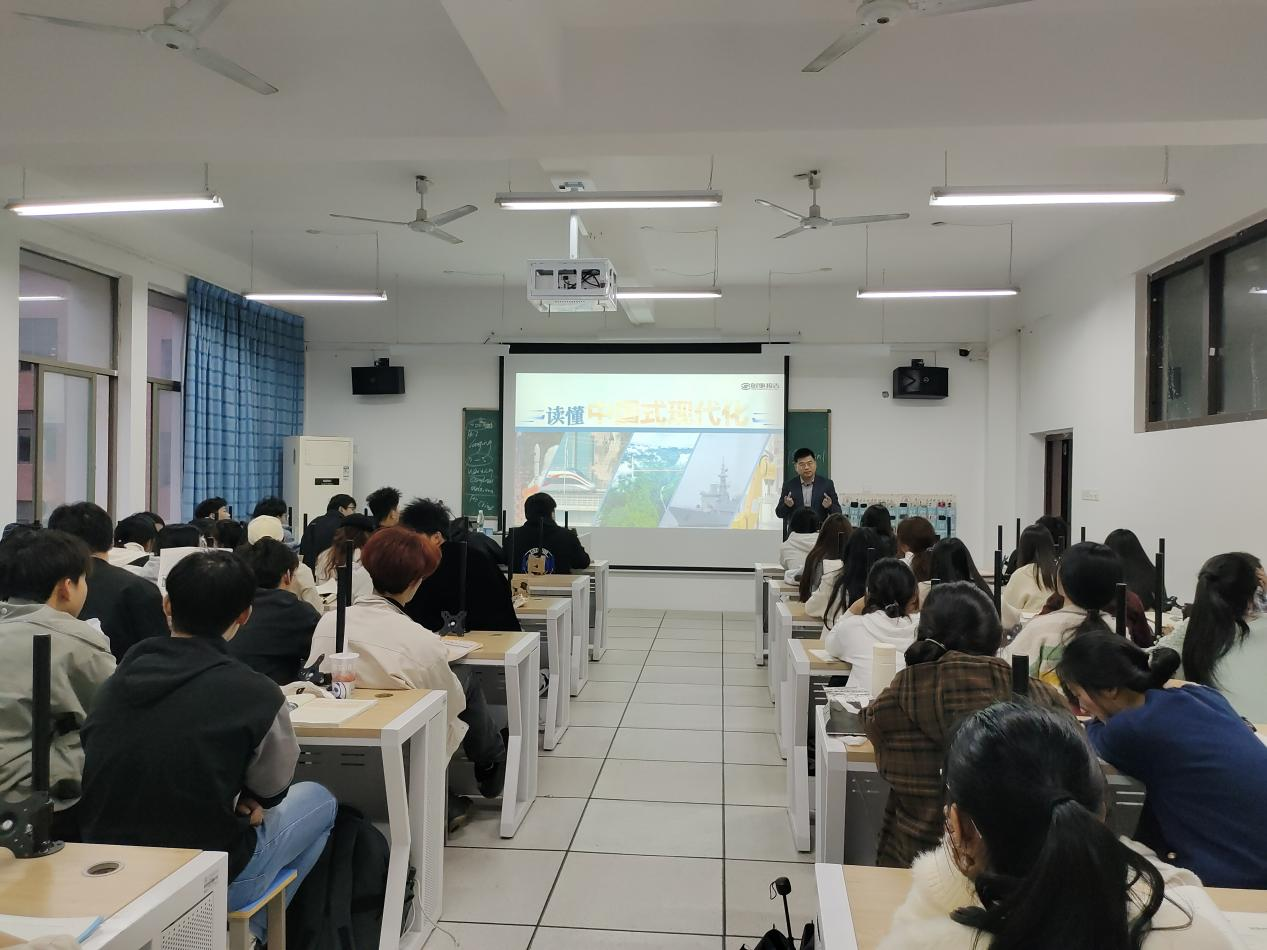 为推动党的理论创新成果进教材进课堂进学生头脑,深入学习宣传习近平新时代中国特色社会主义思想,2024年3月25日,学院书记张欣康以“中国式现代化”为题,为2023级电子商务专科1班和2023级商务英语专科1班讲授了一堂极具国际视野和中国特色的形势与政策课。