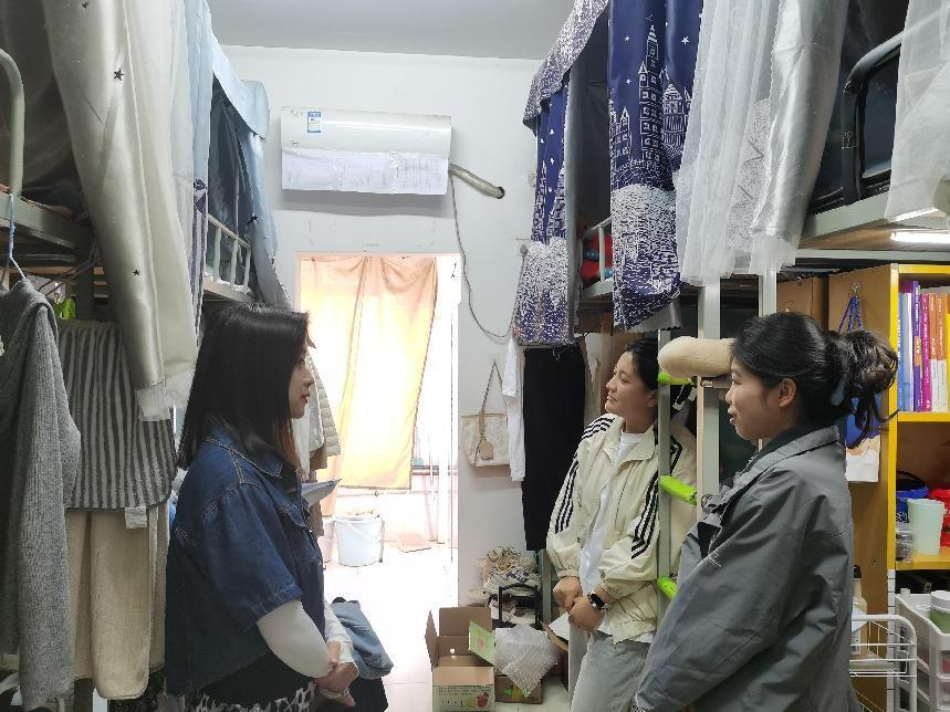 2024年5月8日下午,beat365中文唯一官网党总支书记张欣康、副书记李婷及毕业班辅导员再次走访毕业生宿舍,与毕业生们亲切交谈,倾听学生对未来的规划及自我职业发展方向。