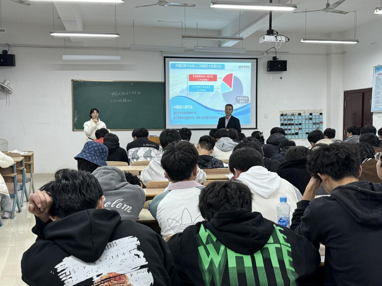 两位教师围绕“中国式现代化”为主题展开。文教授从现代化和近代化的概念入手,着重讲授了中国式现代化提出的历史背景、基本内涵和政策支撑,同学们也积极参与互动、分享自己的看法。巫小玲老师重点讲了中国式现代化的五大特征。巫老师讲到也正是历史条件的多样性决定了道路选择的多样性,使得不同地区探索出自己的现代化道路。而中国式的现代化是吸收一切人类优秀文明成果,既有各国现代化的共同特征,更有基于自己国情的鲜明特色,是最适合中国国情的现代化道路。