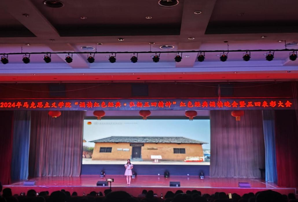重温峥嵘岁月,感悟初心力量。此次晚会不仅是一次红色经典的诵读盛会,更是一次传承红色基因、弘扬五四精神的庄重仪式。作为新时代的青年,我们应当以胸怀远大理想,勤学苦练本领担当时代重任,把红色基因融入血脉,从身边的点点滴滴做起,为实现中华民族伟大复兴的中国梦贡献青春力量。