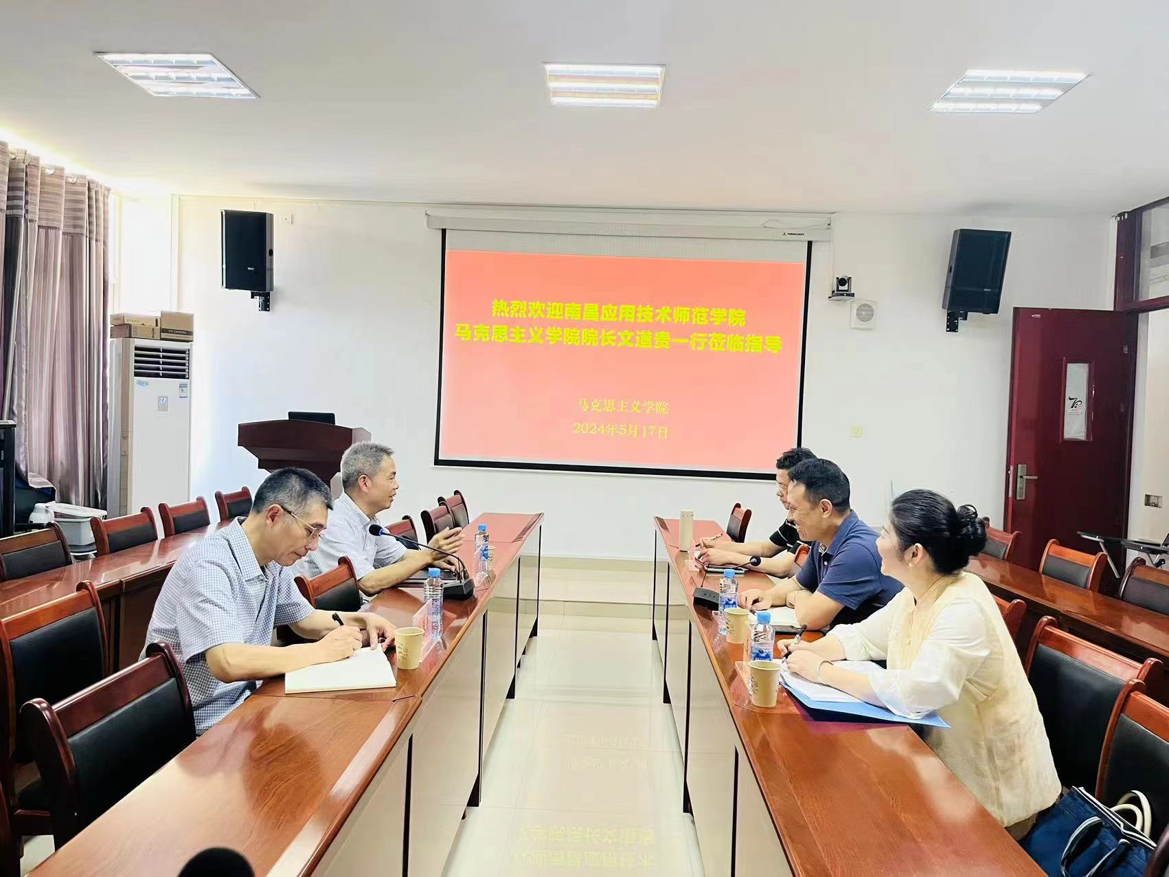 江西科技师范大学与南昌应用技术师范学院有着无法割舍的历史渊源,两家马院在思政课建设、学科专业建设、人才培养等方面都有着共同的任务与责任担当。两院领导都表示要加强联系、交流与合作,推动学院建设高质量内涵式发展。