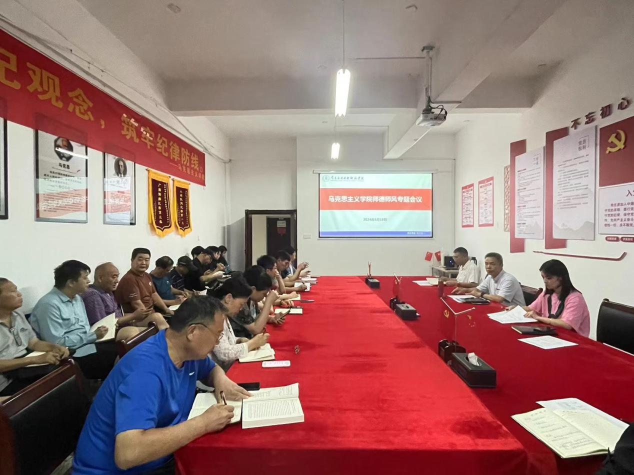 为进一步加强学院师德师风建设,全面提高教师思想政治素质和职业道德素养,按照学校统一部署,6月18日,学院在1511会议室召开师德师风专题会议。院长文道贵、党总支副书记李婷、副院长刘德彰及学院全体教职工参加会议,会议由院长文道贵主持。