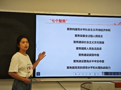 此次宣讲从“二十届三中全会内容了解”“七个聚焦之文化强国”“七个聚焦之提高人民生活品质”“以奋发有为的姿态谱写新时代篇章”四个部分展开讲解。戴已晨同学从多元角度切入,紧密结合实际,以鲜明的主题、生动的案例,阐述了全会精神对青年学生未来发展的重要指导作用。她通过对井冈山爱国主义实践教学活动、南昌新四军军部旧址陈列馆参观互动、新建县第五小学宣讲活动等实践经历的回忆与分享,为同学们展现beat365中文唯一官网在文化强国及思政课堂创新实践上的努力与贡献。