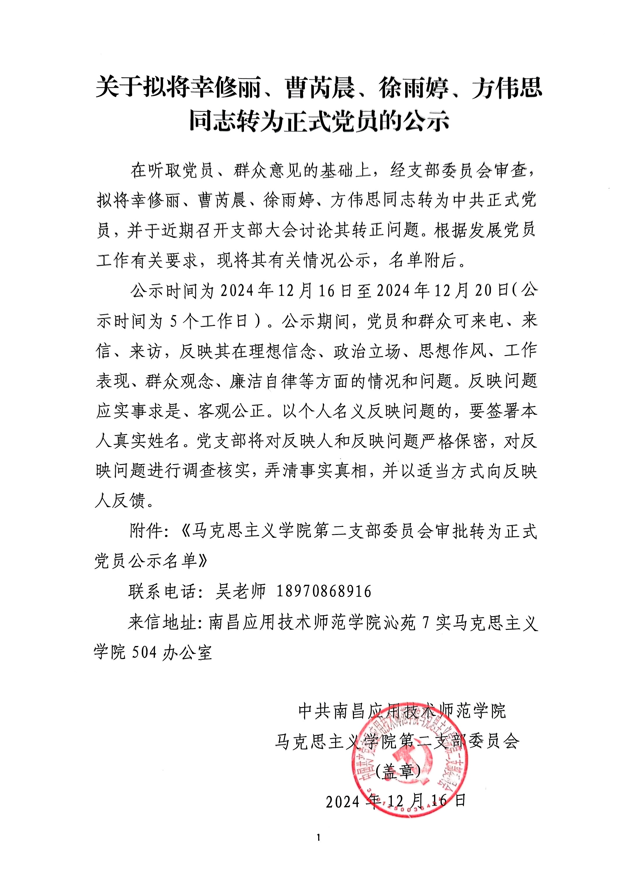 首页栏目 通知公告 学院新闻 习近平思想学习专栏 主题教育学习 院长书记信箱 您现在的位置是:首页 > 首页栏目 > 通知公告 关于拟将幸修丽、曹芮晨、徐雨婷、方伟思同志转为正式党员的公示 党政办2024-12-164585 上一篇 关于将吴克坤等8位同志列为发展对象人选的公示 下一篇 关于确定胡琛为2024 年度宣传思想文化工作 “先进个人”的公示