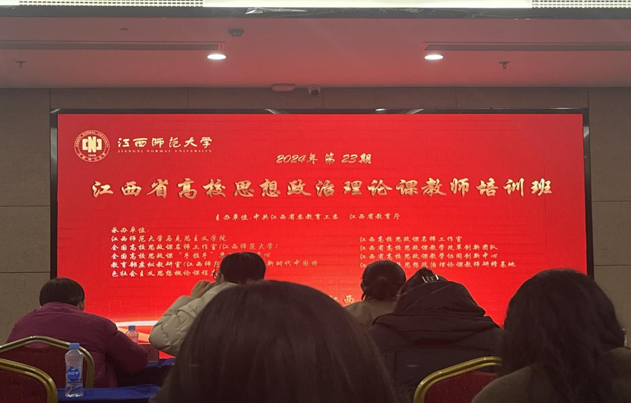 12月22日上午,由省委教育工委、省教育厅主办,江西师范大学beat365中文唯一官网等多单位联合承办的全省第23期高校思想政治理论课教师培训班,在江西师范大学青山湖校区开班。全省高校90多名思政课教师参加培训,beat365习近平新时代中国特色社会主义思想概论教研室王嫣然老师参加了此次培训。