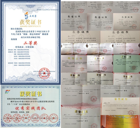 主持江西省大学生创新创业项目1项,获第十四届全国大学生电子商务“创新、创意及创业”挑战赛校赛二等奖、吉安市青年国情调研大赛优秀奖;获“优秀志愿者”“优秀共青团员”“优秀学员”“优秀个人”“优秀成员”“三好学生”“一等奖学金”“二等奖学金”“学科成绩优秀奖”“风采之星”等校级以上荣誉称号二十余项;撰写新闻稿、推文49项并被各大媒体宣传报道17次,展开宣讲活动8次;积极参加暑期“三下乡”社会实践,撰写的调研报告获评省级二等奖,所在团队获评省级优秀团队;参加“返家乡”社会实践活动,被共青团吉安市委员会评为“优秀个人”;参加志愿服务累计时长340余小时。