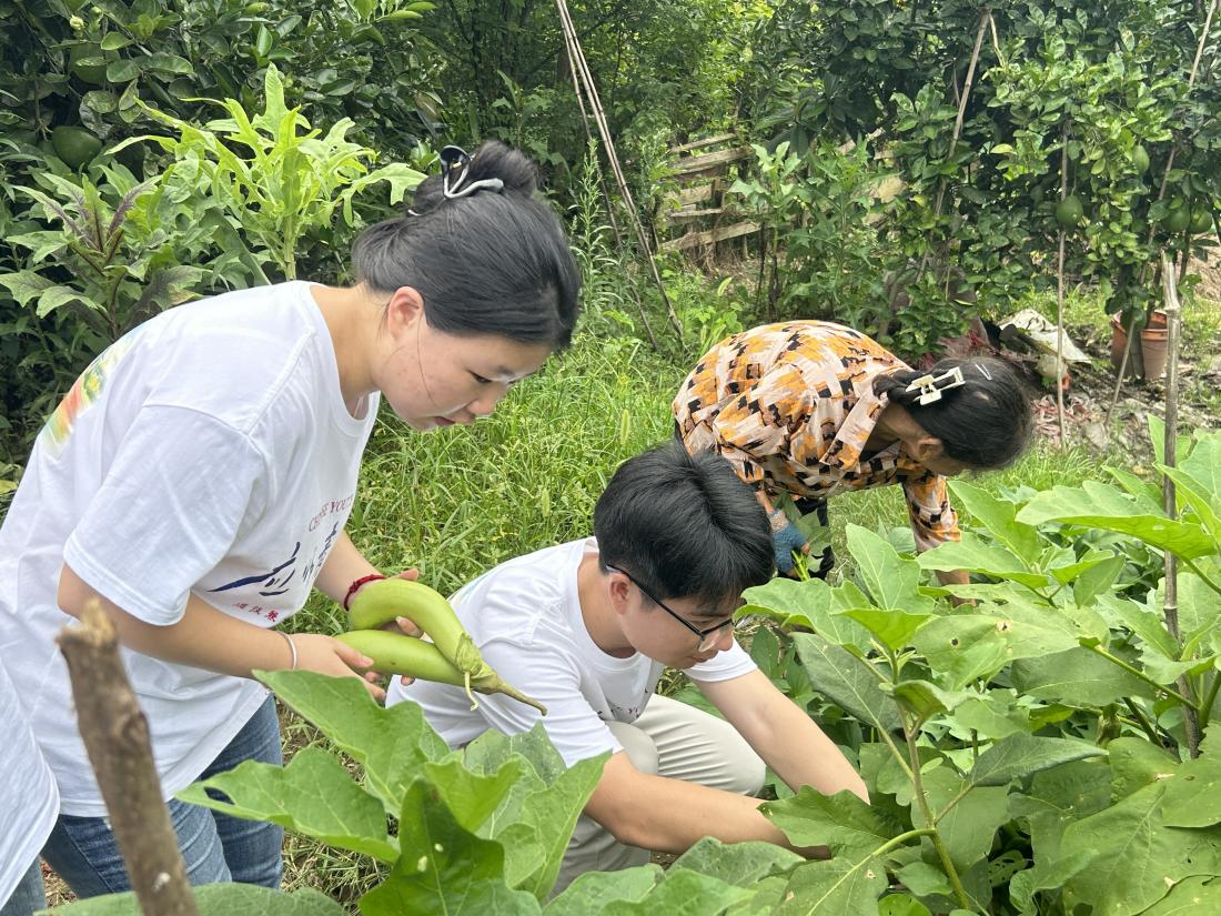 听完交通安全宣讲后,星火队队员们在王家村走访了一户村民,不仅与村民亲切的交流,还在村民的带领下,队员们亲自采摘了新鲜的辣椒和茄子,随后一同参与了洗菜、切菜等农活以及亲手制作了蛋炒饭和炒茄子两道美食。这次独特的体验让队员们深刻感受到了乡村生活的朴实与美好,同时也增进了队员们与村民之间的深厚感情。