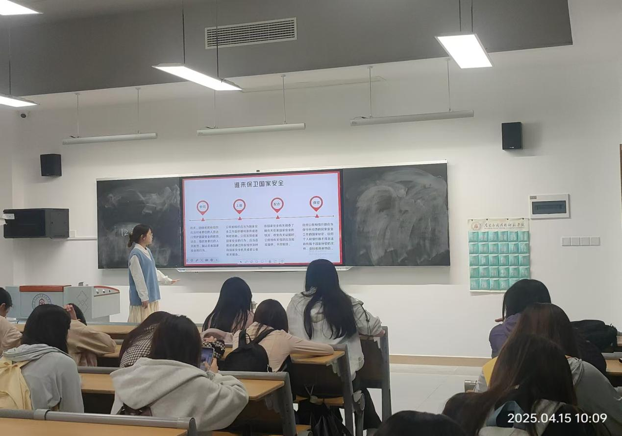 吴佳琪通过图片及视频资料,向同学们深入浅出地介绍了国家安全的概念、涵盖领域以及重要意义。从传统的国土安全、军事安全,到非传统的网络安全、生态安全,丰富多元的内容让同学们深刻认识到危害国家安全的行为层出不穷,我们不仅需要提防犯罪分子在传统领域中对国家安全的危害行径,还要识破非传统领域危害国家安全的行为。