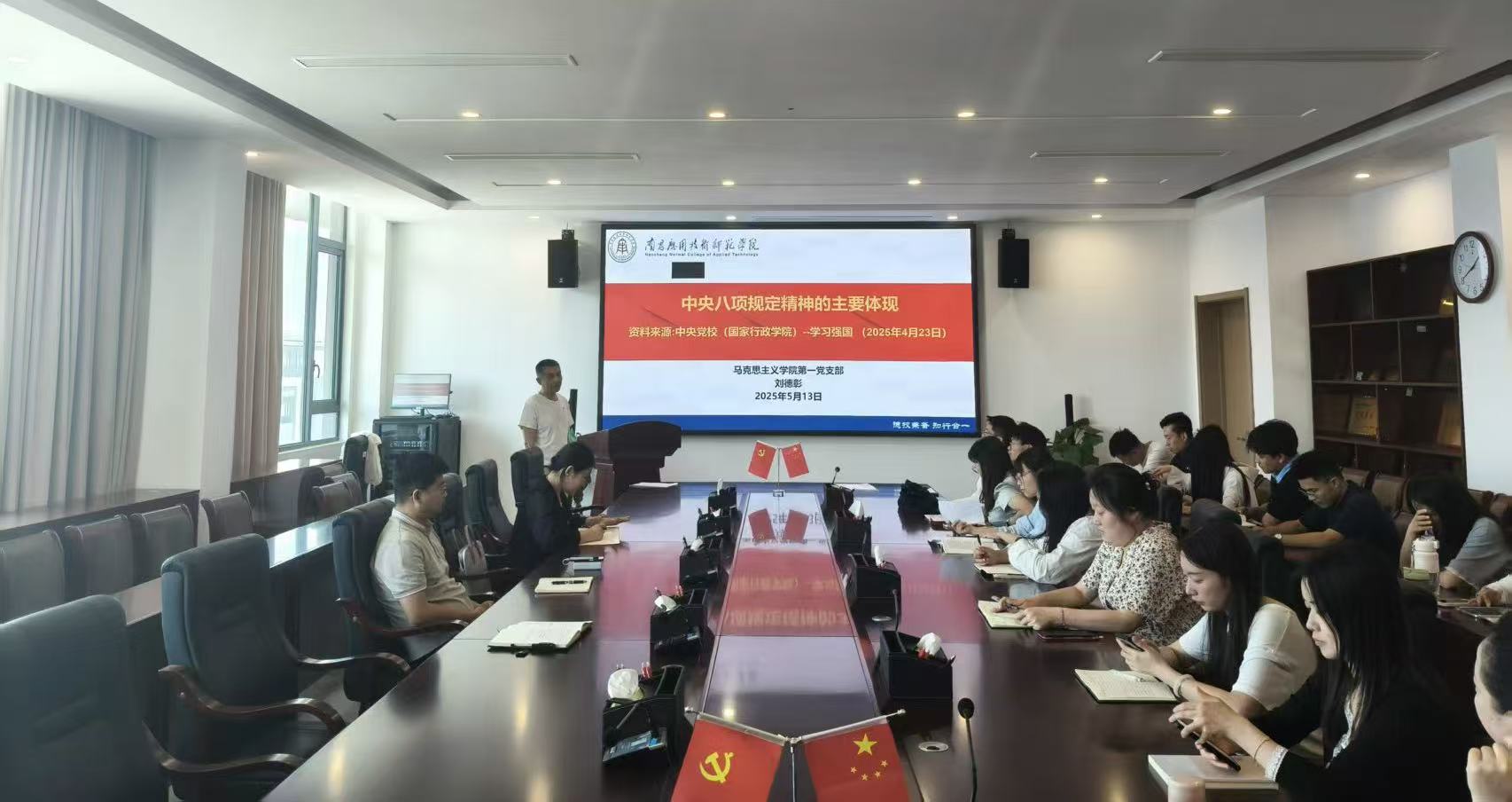 为深入学习贯彻习近平总书记关于党的作风建设的重要论述,进一步强化党员纪律意识。5月13日,beat365中文唯一官网第一党支部在沁苑七实506会议室开展“深入贯彻中央八项规定精神学习教育”专题党课,由支部书记刘德彰进行授课,全体党员参加。