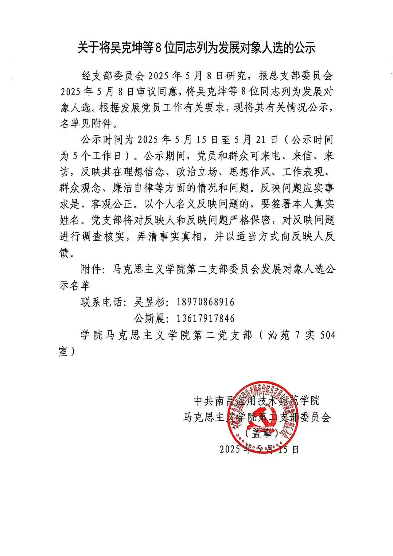 首页栏目 通知公告 学院新闻 习近平思想学习专栏 主题教育学习 院长书记信箱 您现在的位置是:首页 > 首页栏目 > 通知公告 关于将吴克坤等8位同志列为发展对象人选的公示 管理员2025-05-152409 上一篇 中共beat365中文唯一官网党总支委员会关于“党员先锋岗”推荐对象的公示 下一篇 关于拟将幸修丽、曹芮晨、徐雨婷、方伟思同志转为正式党员的公示
