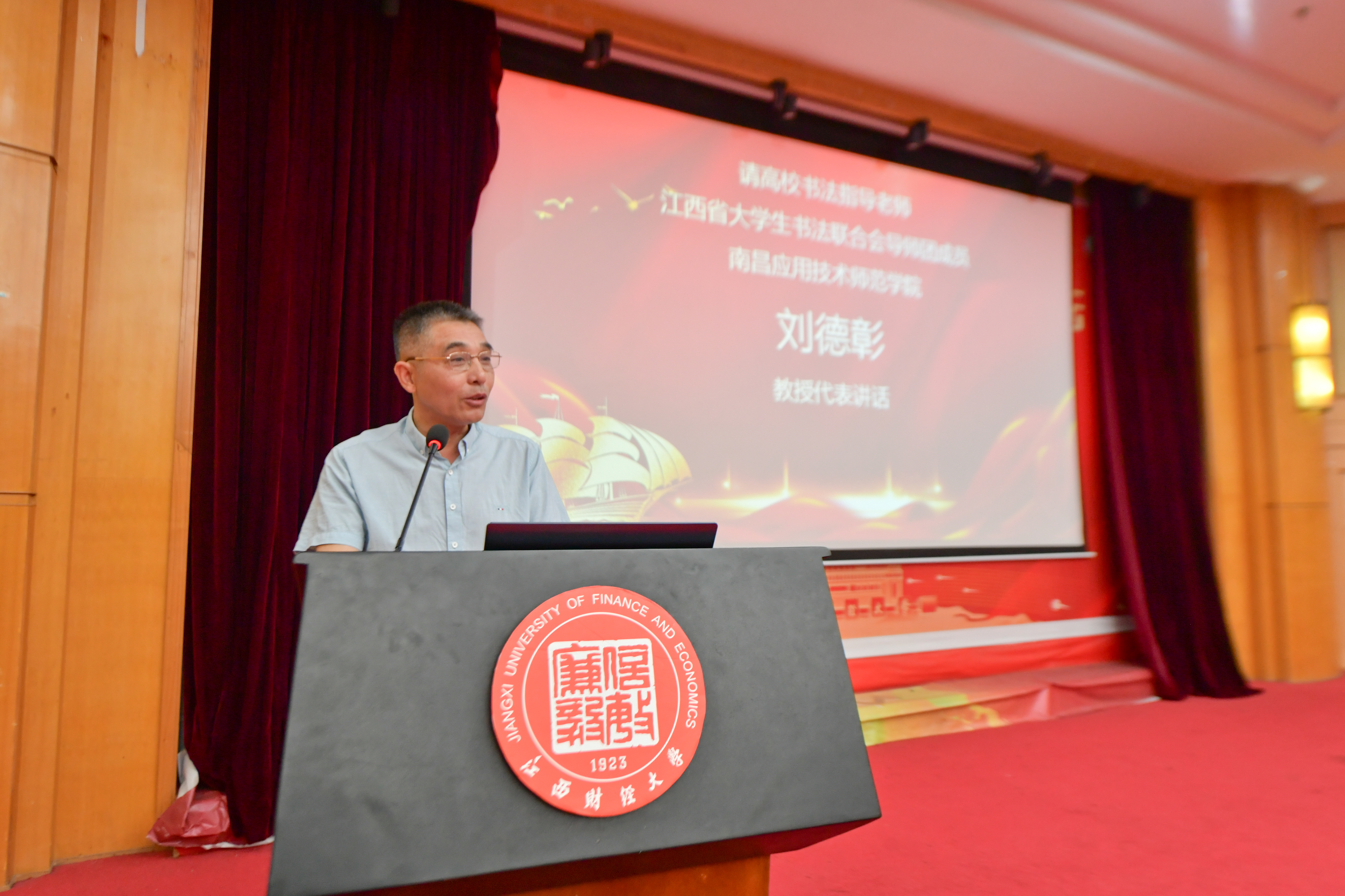 beat365副院长、学校兰亭书法协会指导老师刘德彰受邀发言并颁奖。刘德彰介绍了学校兰亭书法协会发展,并解读了“字如其人”的含义:优秀的作品,不仅表现了对优秀传统文化的继承,更应该是作者自身道德情操的体现,要从书法学习中提高了自身的素养,既要字品,更要人品。